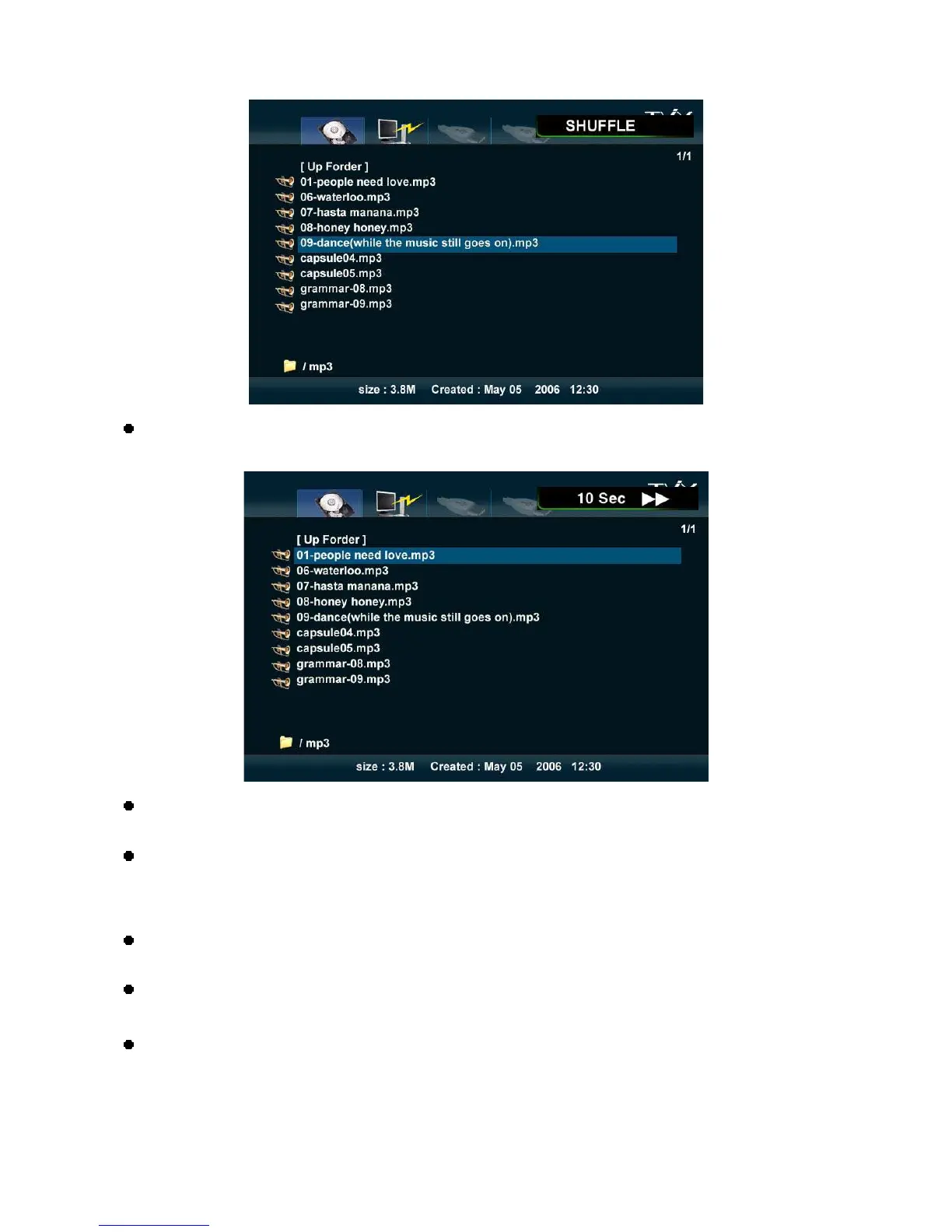 Supports 10 Sec function when playing WMA, WAV files.