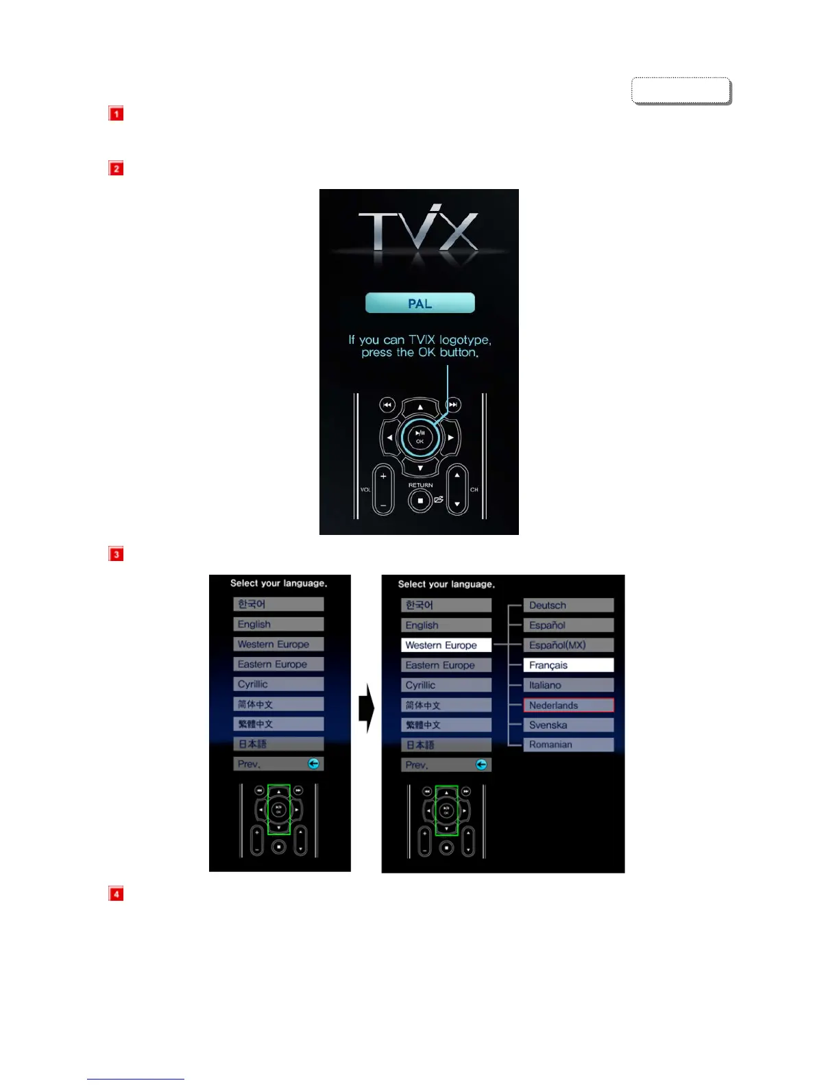 Druk op OK wanneer uw het TVIX logo in uw beeld ziet.