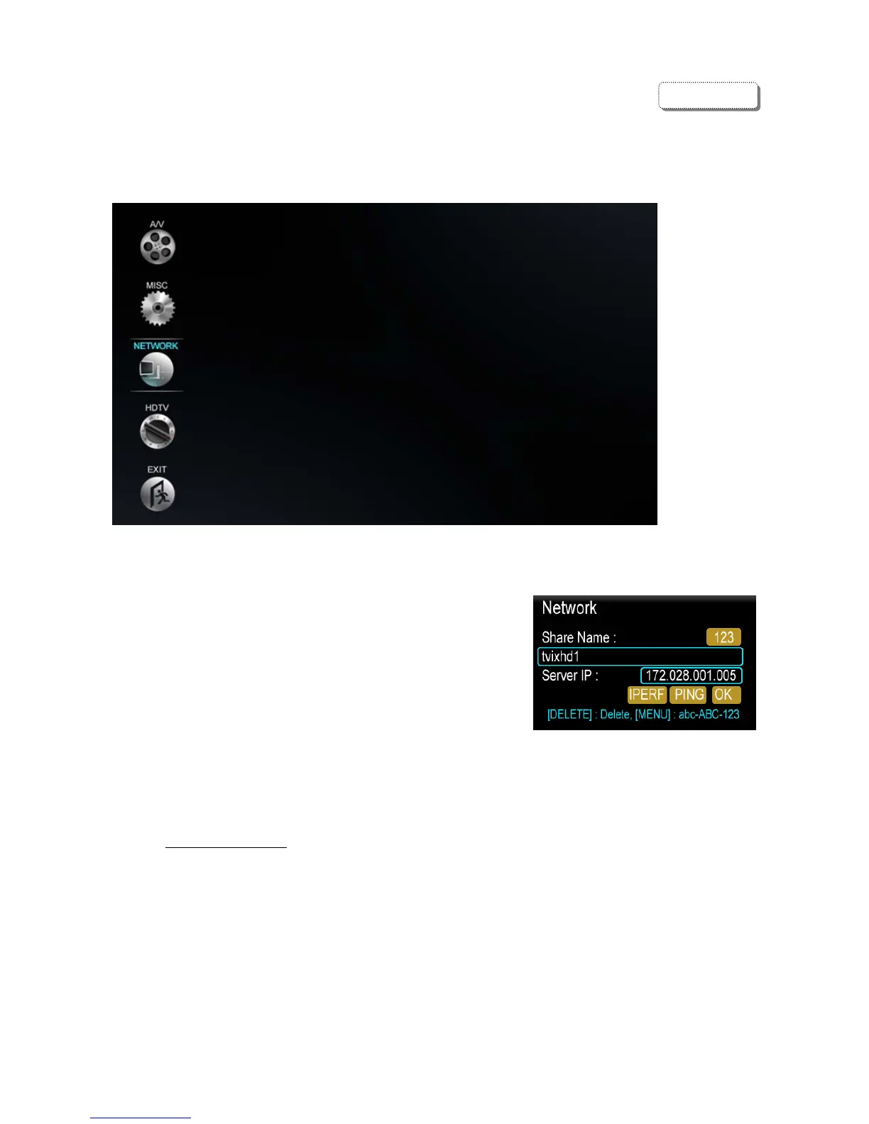 setting. Raadpleeg alstublieft de sectie Netwerk configuratie instellen in TViX HD.