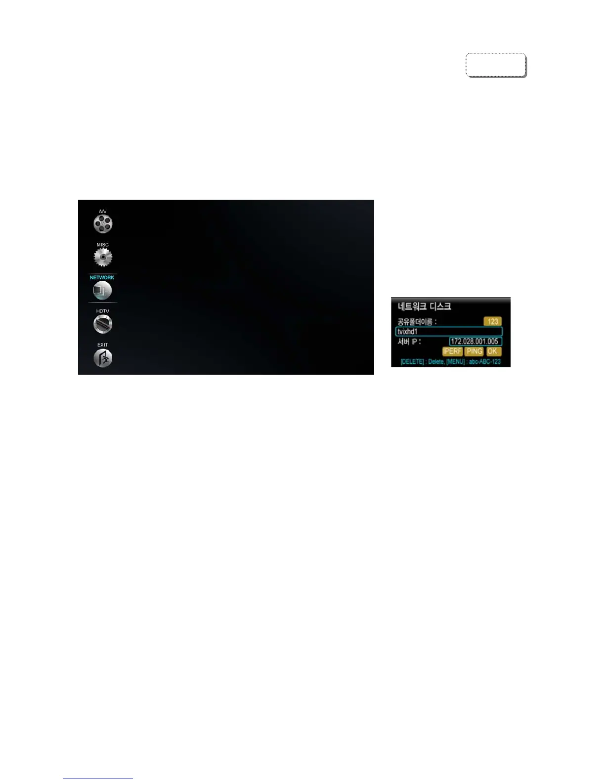 비디오 오디오 연결이 끝났으면 SETUP 버튼을 눌러 메인 화면의 NETWORK를 선택하시면 됩니다.