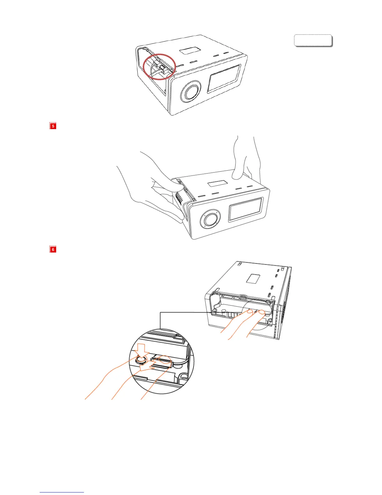 para presionar y jalar la tapa negra en a dirección del disco duro.