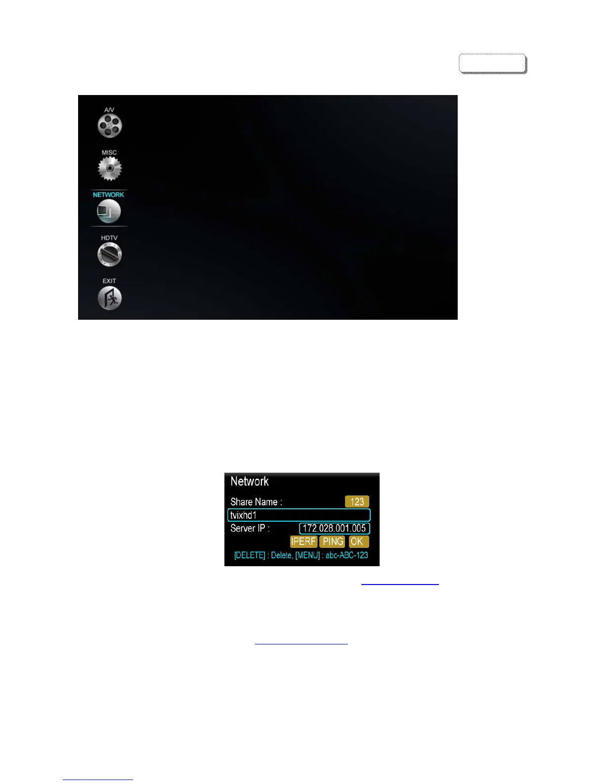 - NFS läge ; Du måste installera mjukvaran TViX NetShare på din PC, men du kan då spela upp filer