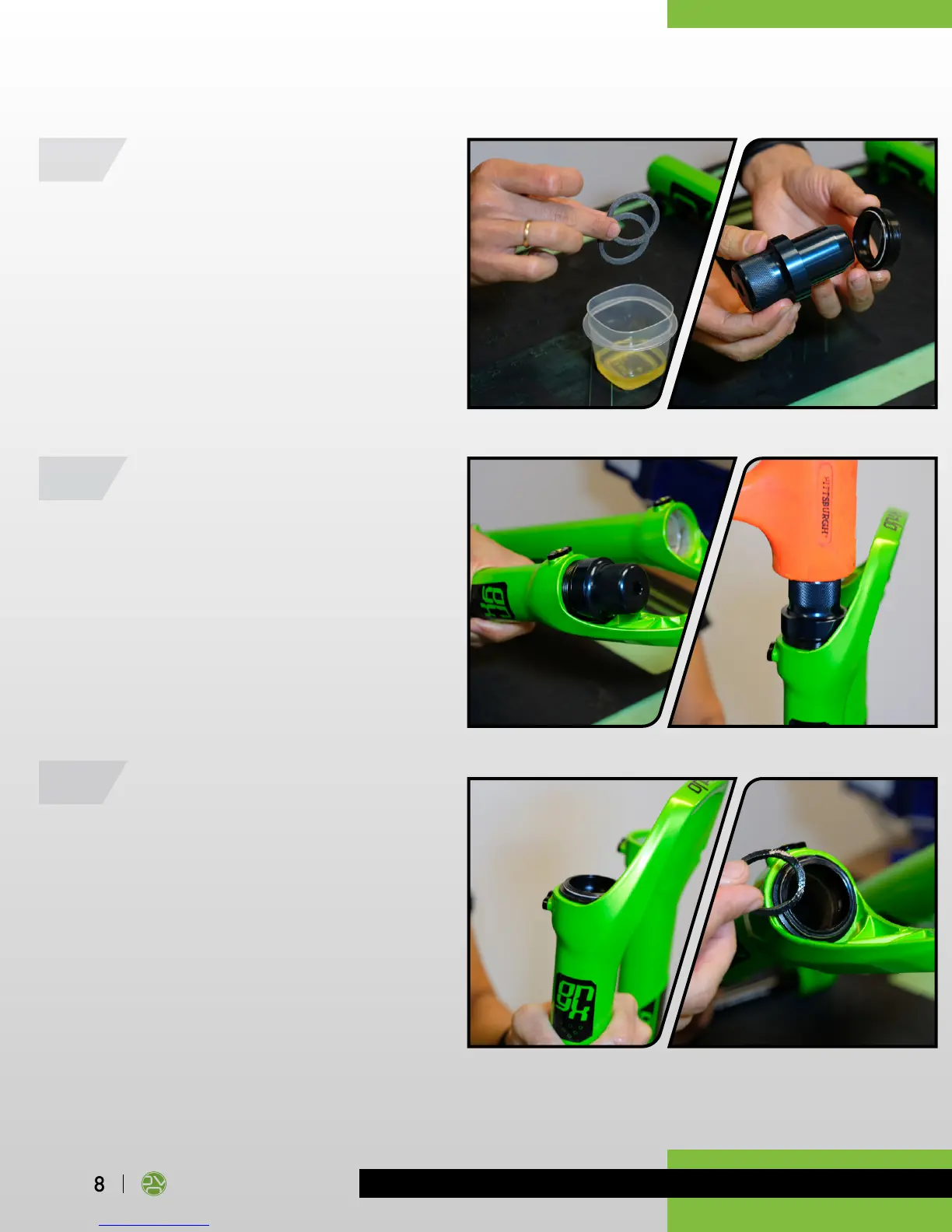 Soak the new foam rings in 7.5 wt suspension oil.