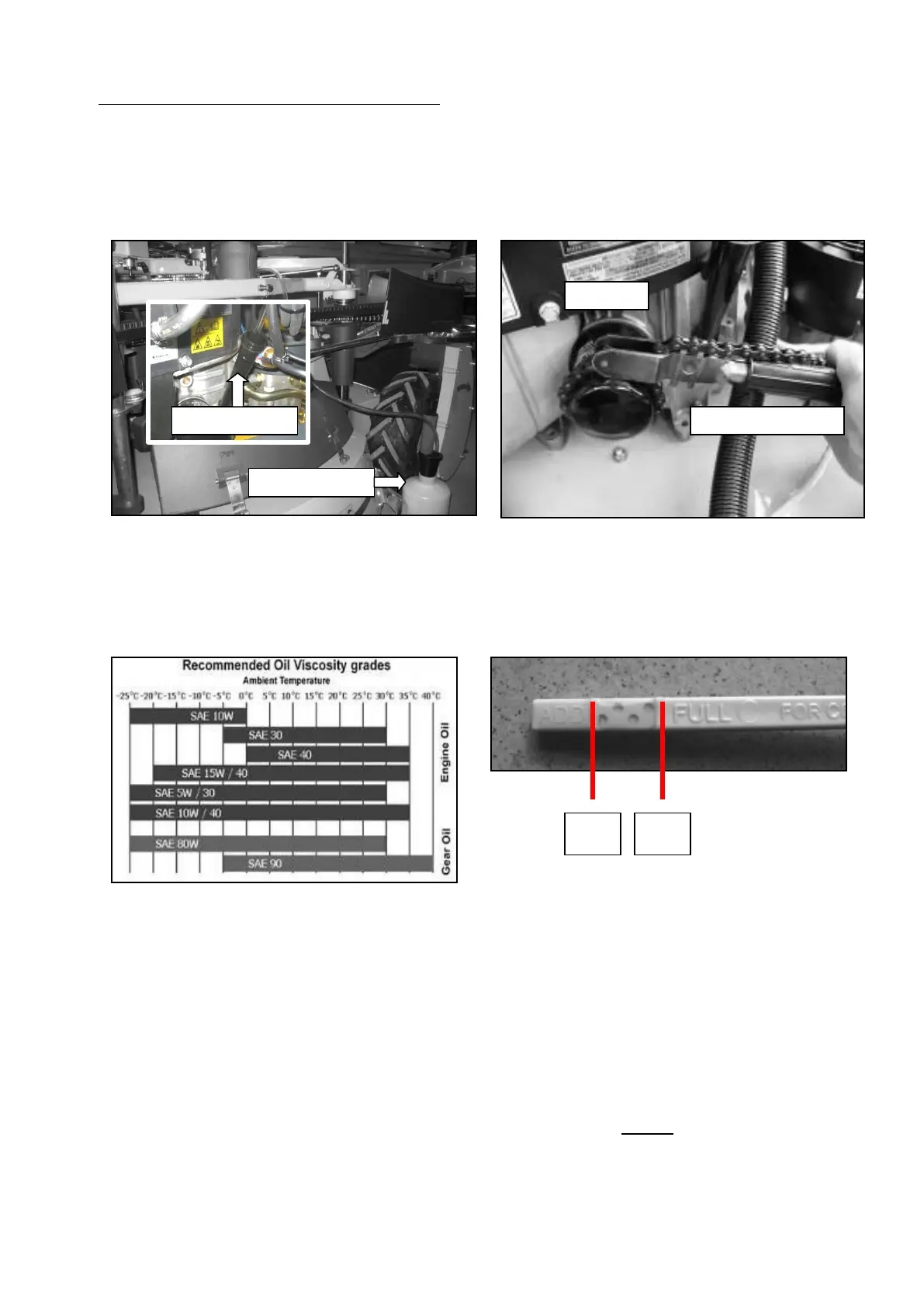 - Check the oil level with the dipstick (up to the upper dipstick line to increase slope accessibility)