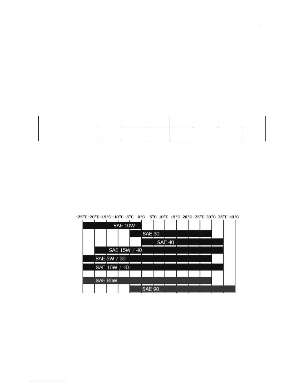 Chart of SAE oil classes according to external temperatures engine / gear