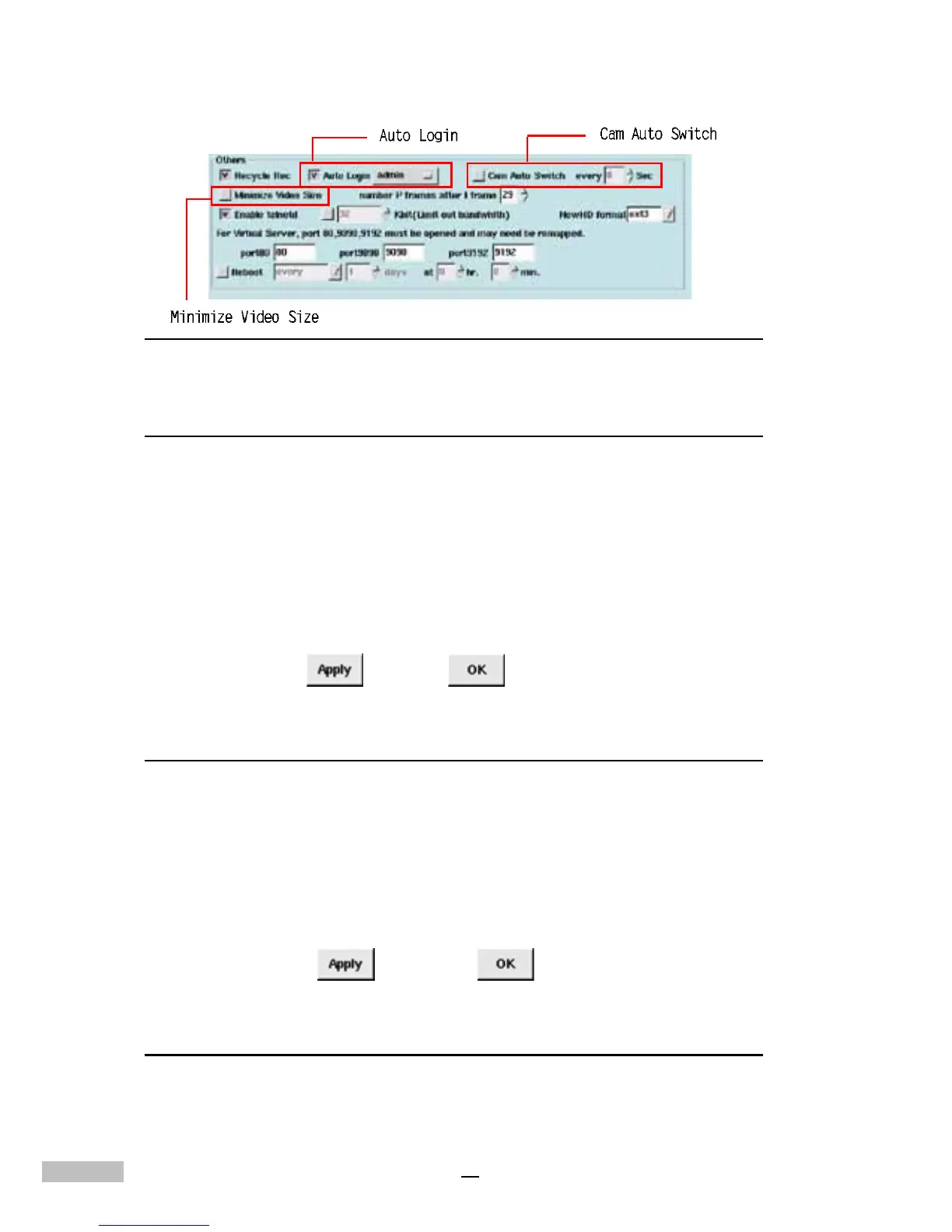 Figure 7-11:Auto Login, Cam Auto Switch, andMinimize Video Size