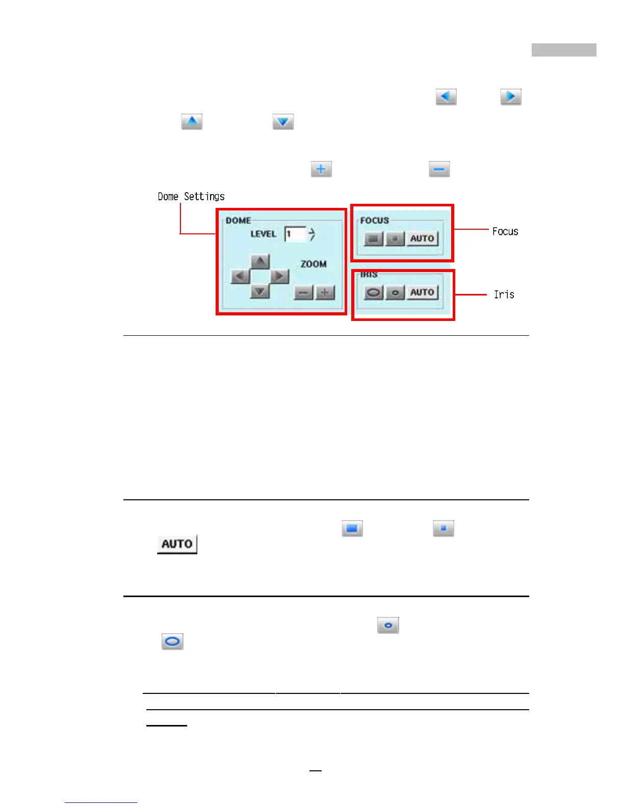 Figure 12-4: Dome Settings, Focus, Iris