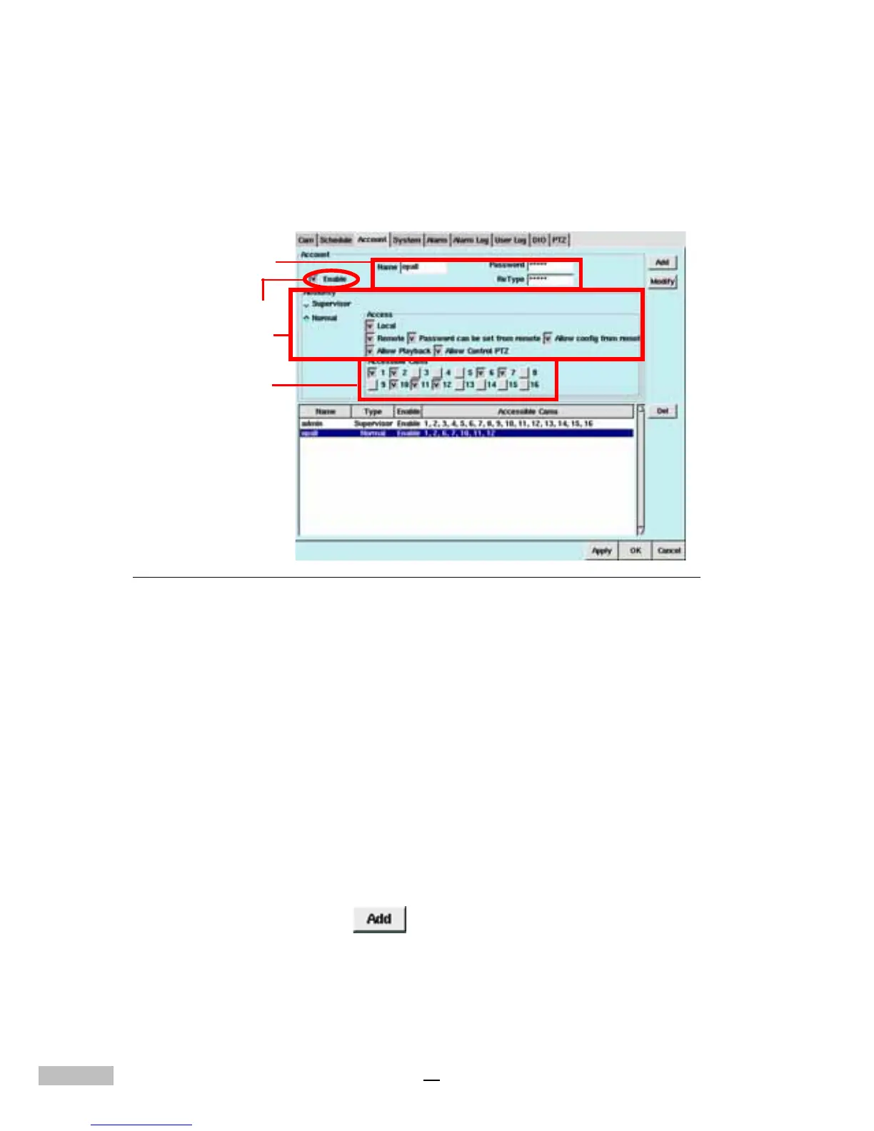 button. The DVR will be add the user to