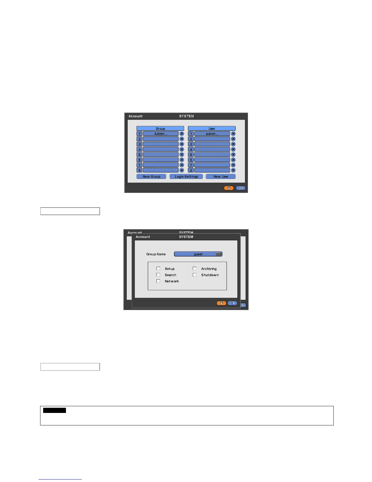 Please click ( ) SYSTEM>Account and the following screen will appear.
