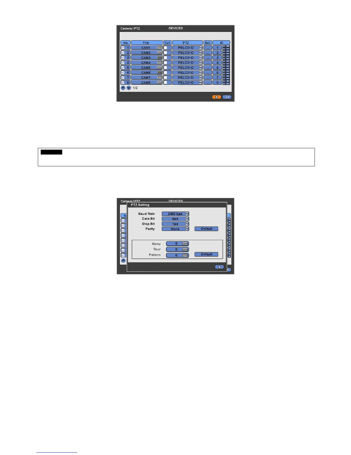 - For further details on setting, please refer to the PTZ camera manual.