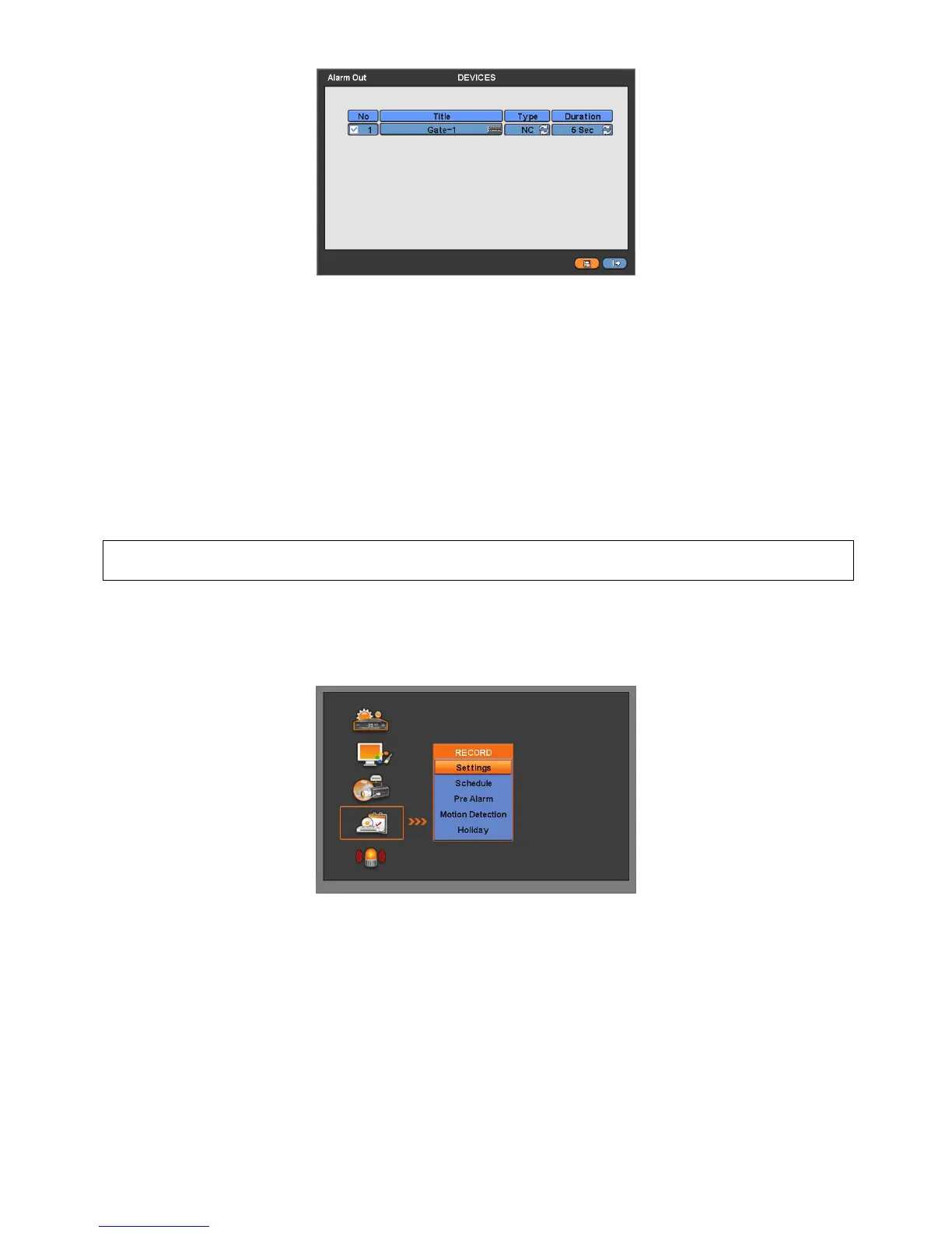 User may change the type and duration of all Alarm output at a time by clicking the Type and Duration box on the menu tab.