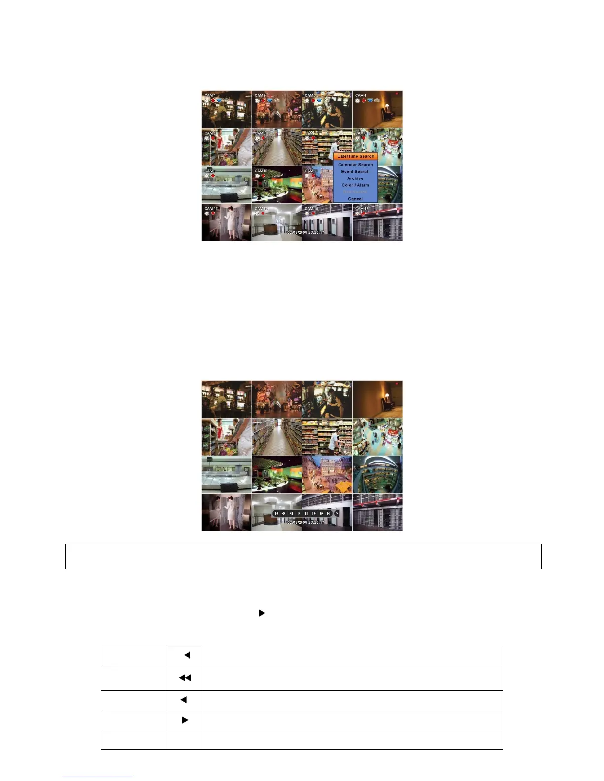 - Exit Search: From playback display to live display.
