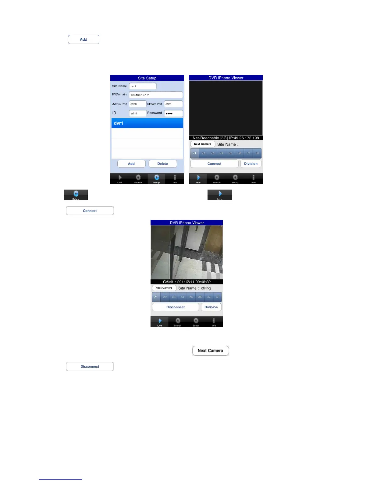 ” to connect the DVR to the iPhone.