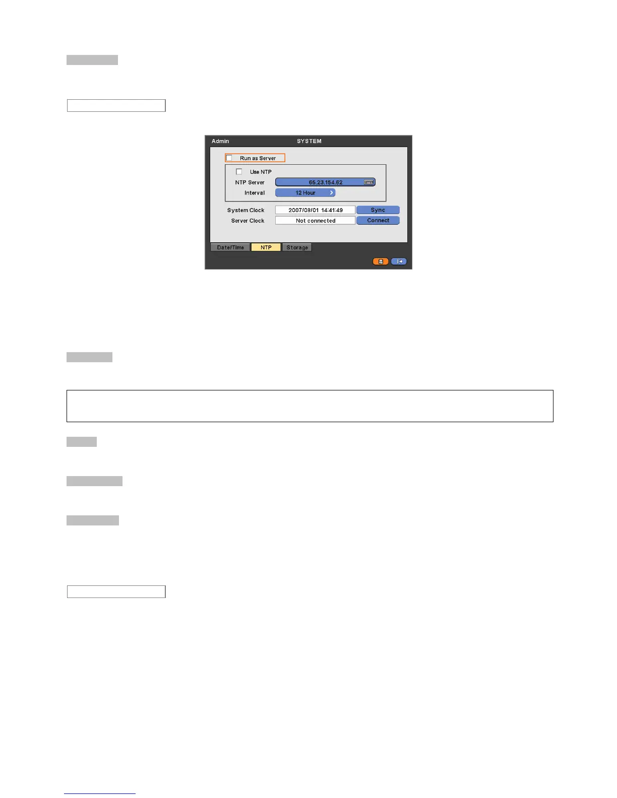 - Run as Server: NTP cannot be used in a non-networked environment (Intranet environment). In this case, DVR with Run