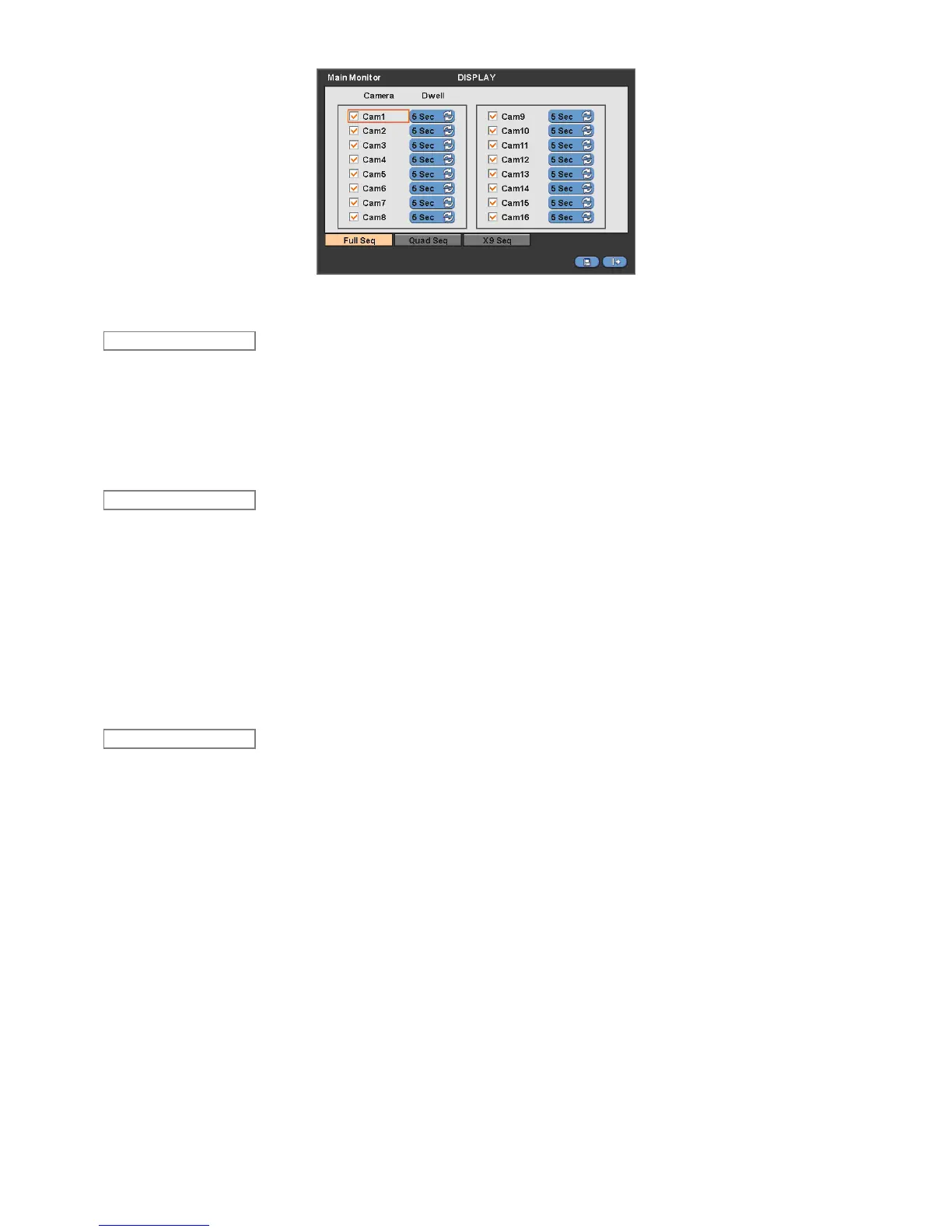 The Main Monitor menu will allow user to adjust channel sequencing interval of Main monitor.