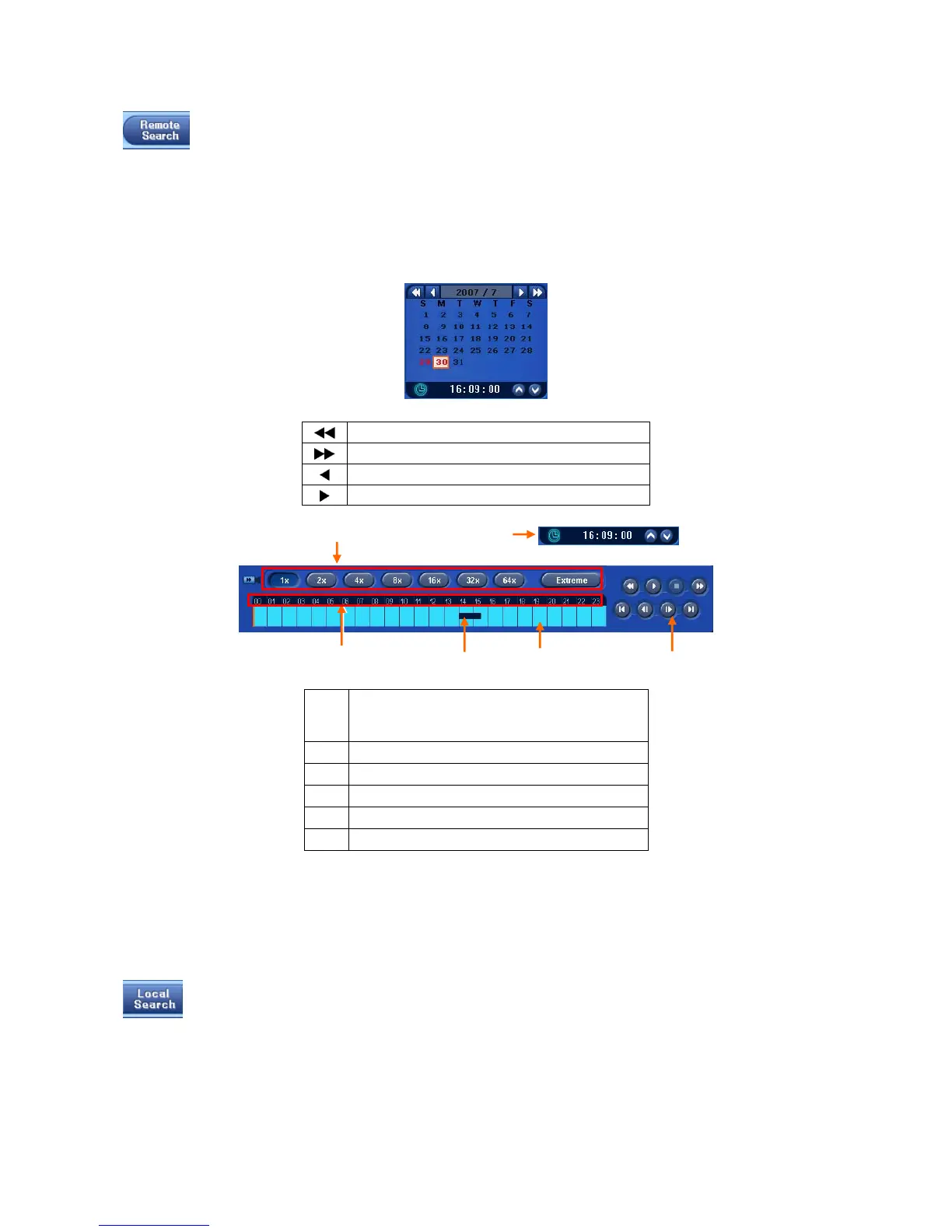 The REMOTE SEARCH button allows user to playback recorded video of DVR.