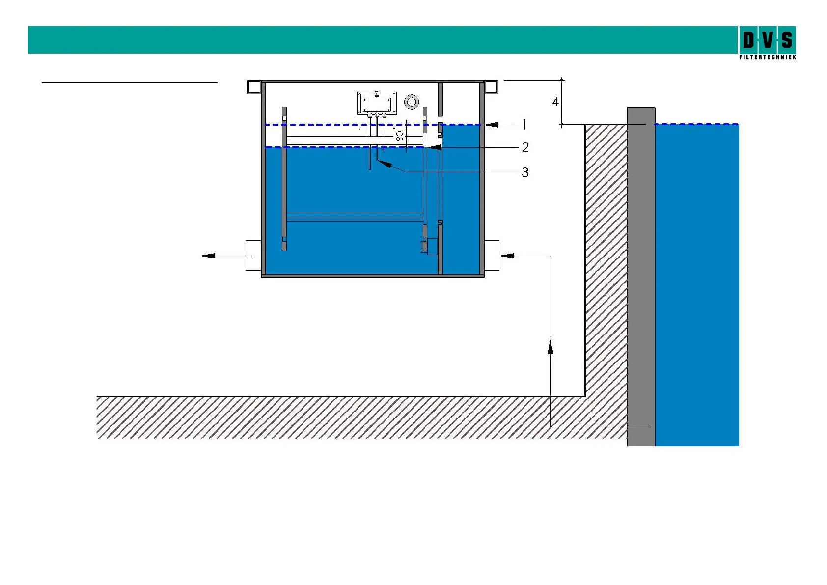 1. Water level with running pump after rinse (short pen 8 cm in water)