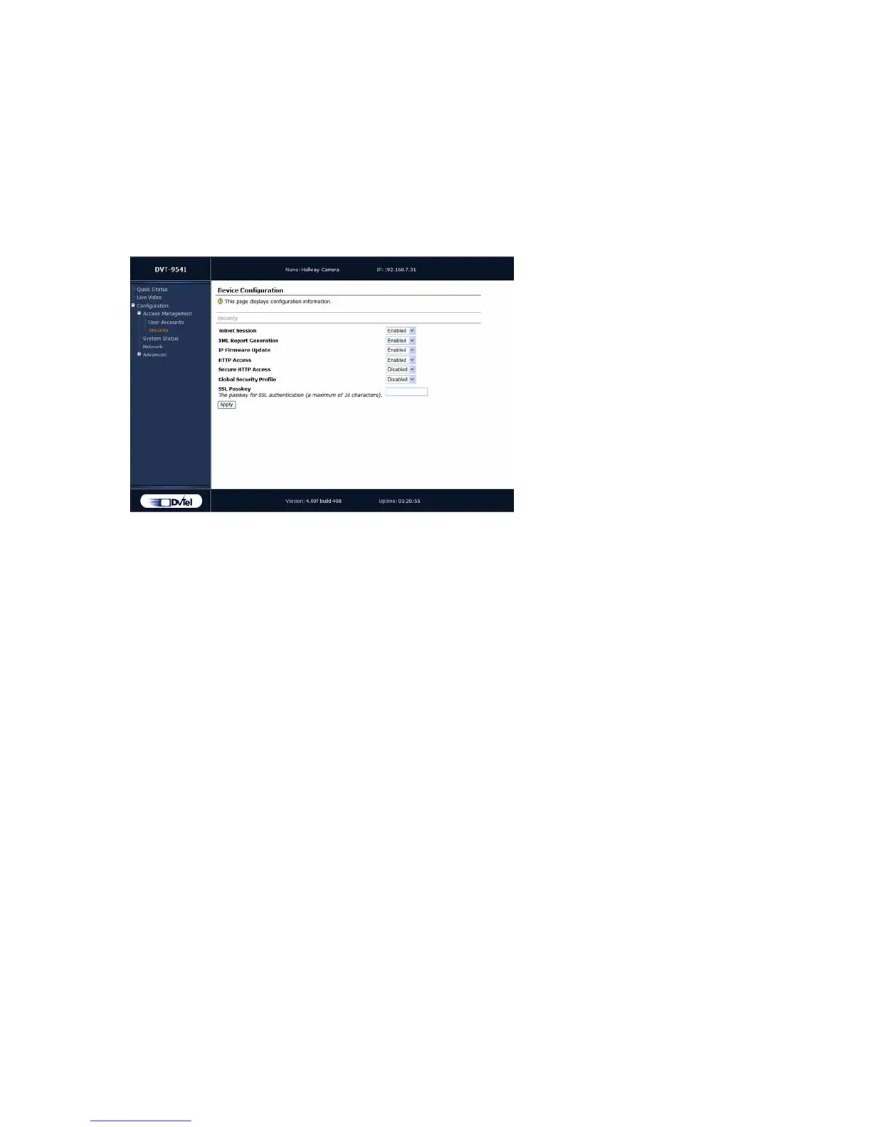 SSL Passkey—The password used to secure SSL connections with the unit. The