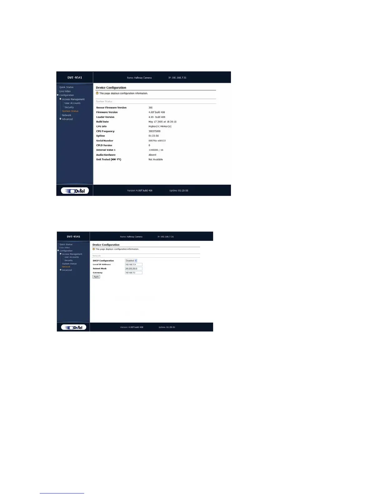 Local IP Address—The unique IP address of the unit on the network. The IP