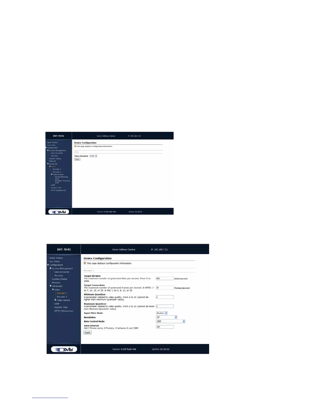 You can configure various parameters related to video encoding, the video sensor,
