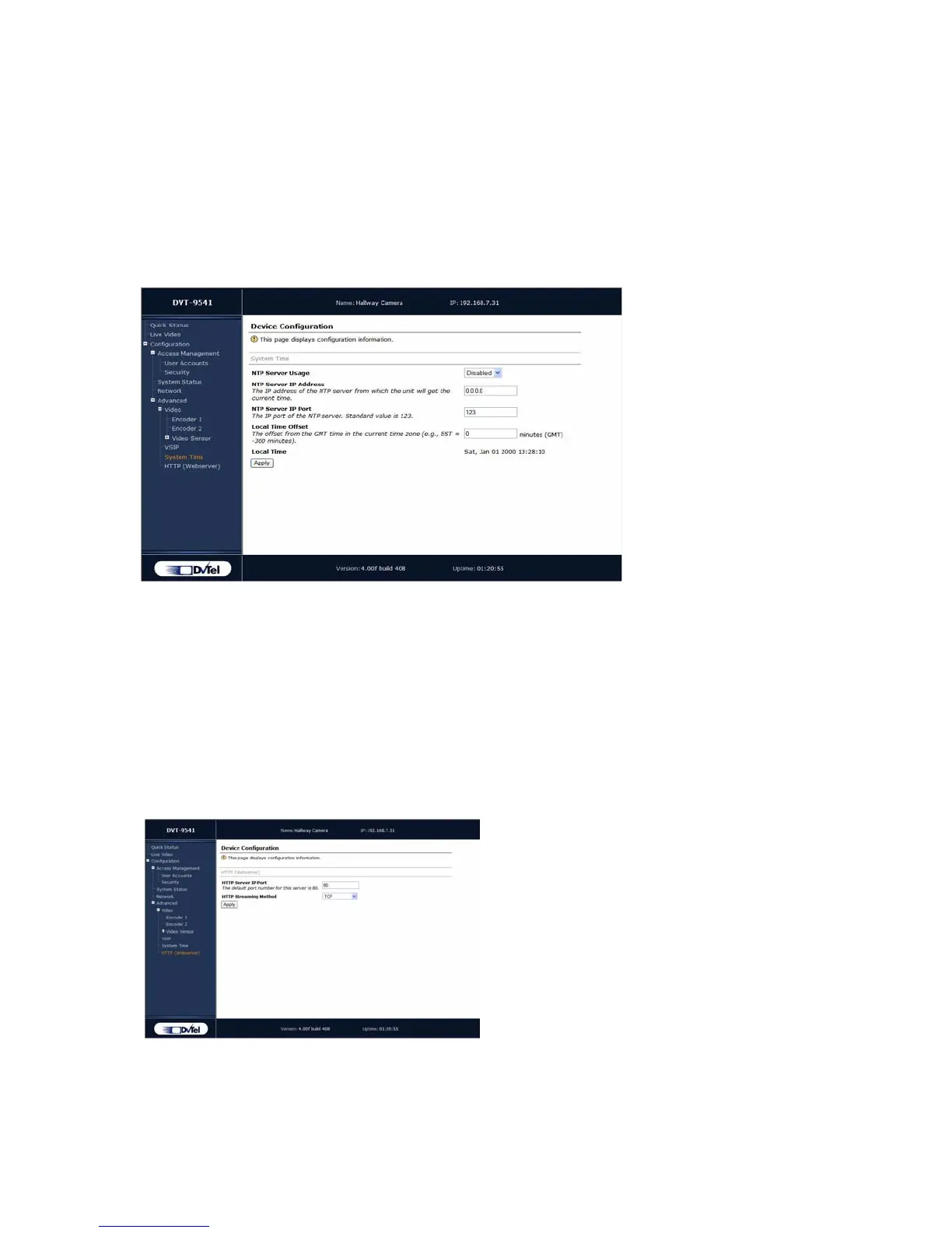 HTTP Server IP Port—The port number of the HTTP server. The default is 80.