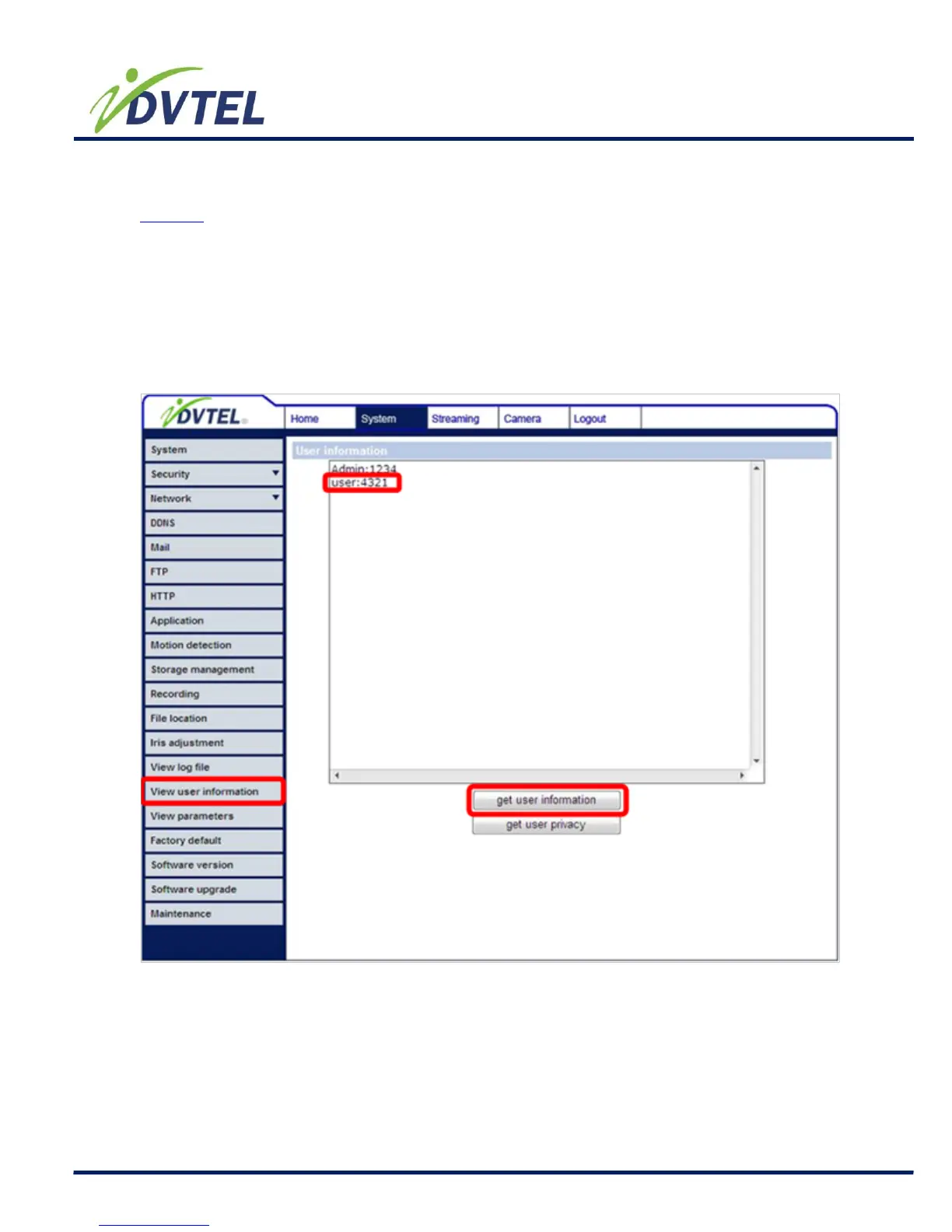 It indicates that one user’s login username is: User, and the password is: 4321.