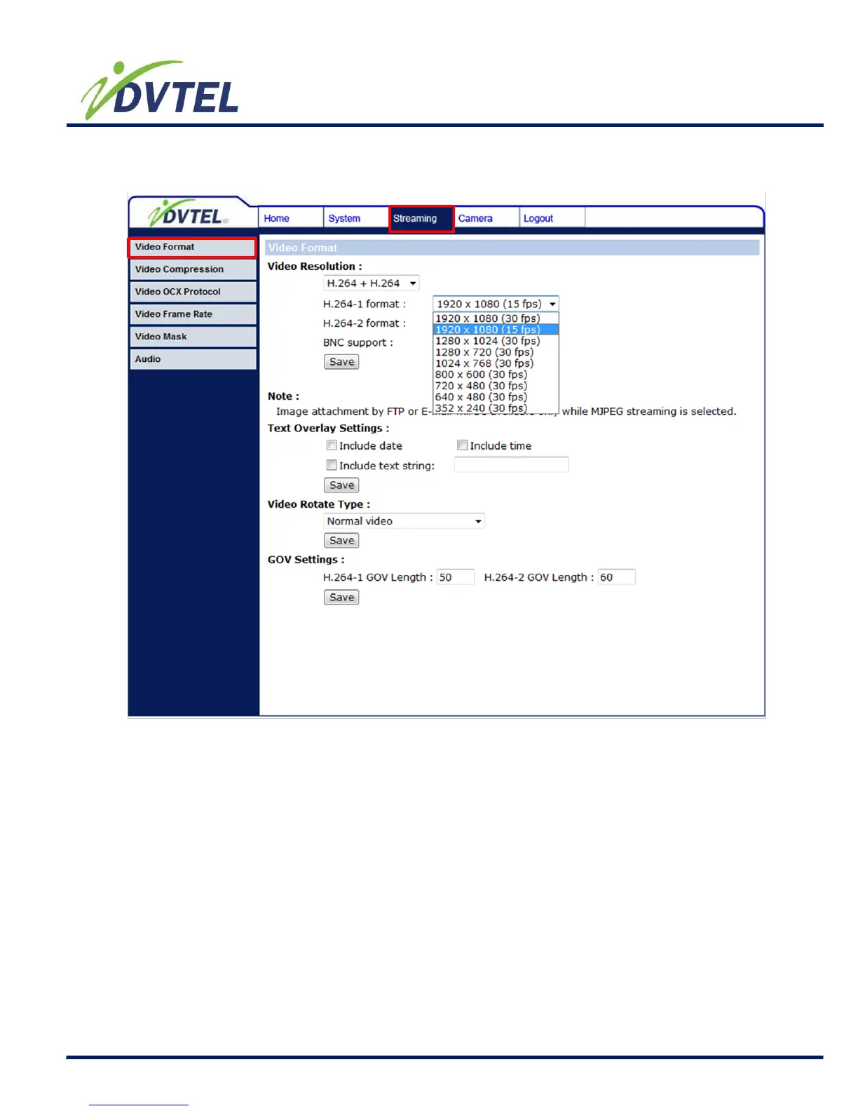DVTEL CF-4221-00 - Video Resolution and Rotate Type