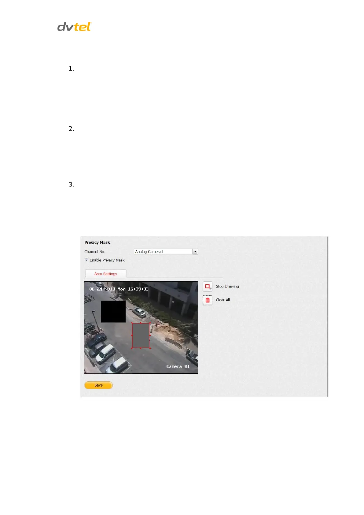 during recording. From the Configuration sidebar menu, select Camera Settings > Privacy Mask.