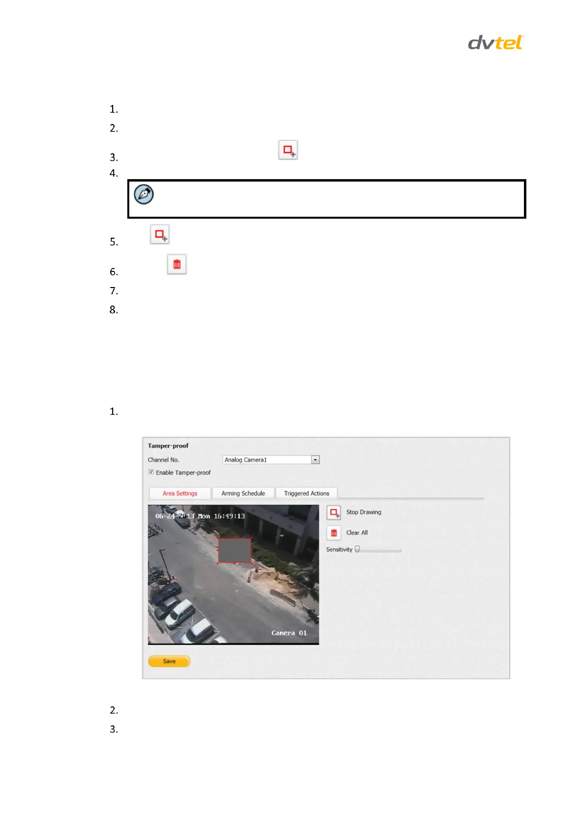 To create a privacy mask, click the Draw Area icon.