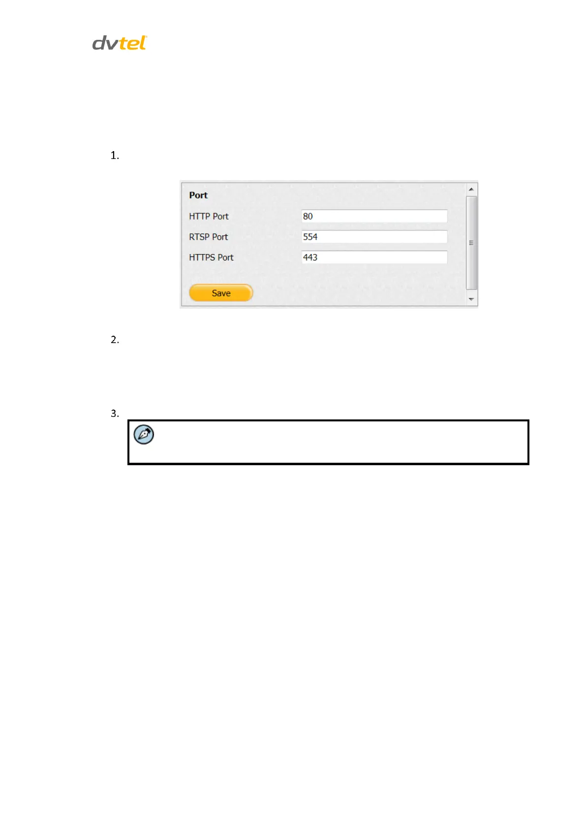 The Port screen is used to set the port numbers used for HTTP, RTSP, and HTTPS.