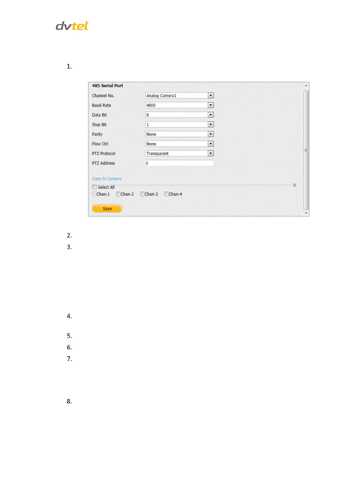 From the sidebar menu, select Configuration > Serial Port Settings > 485 Serial Port. The