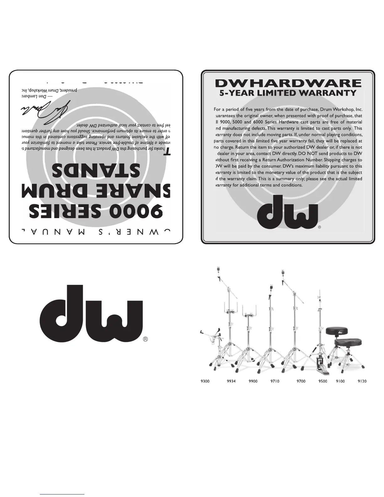 For a period of ve years from the date of purchase, Drum Workshop, Inc.