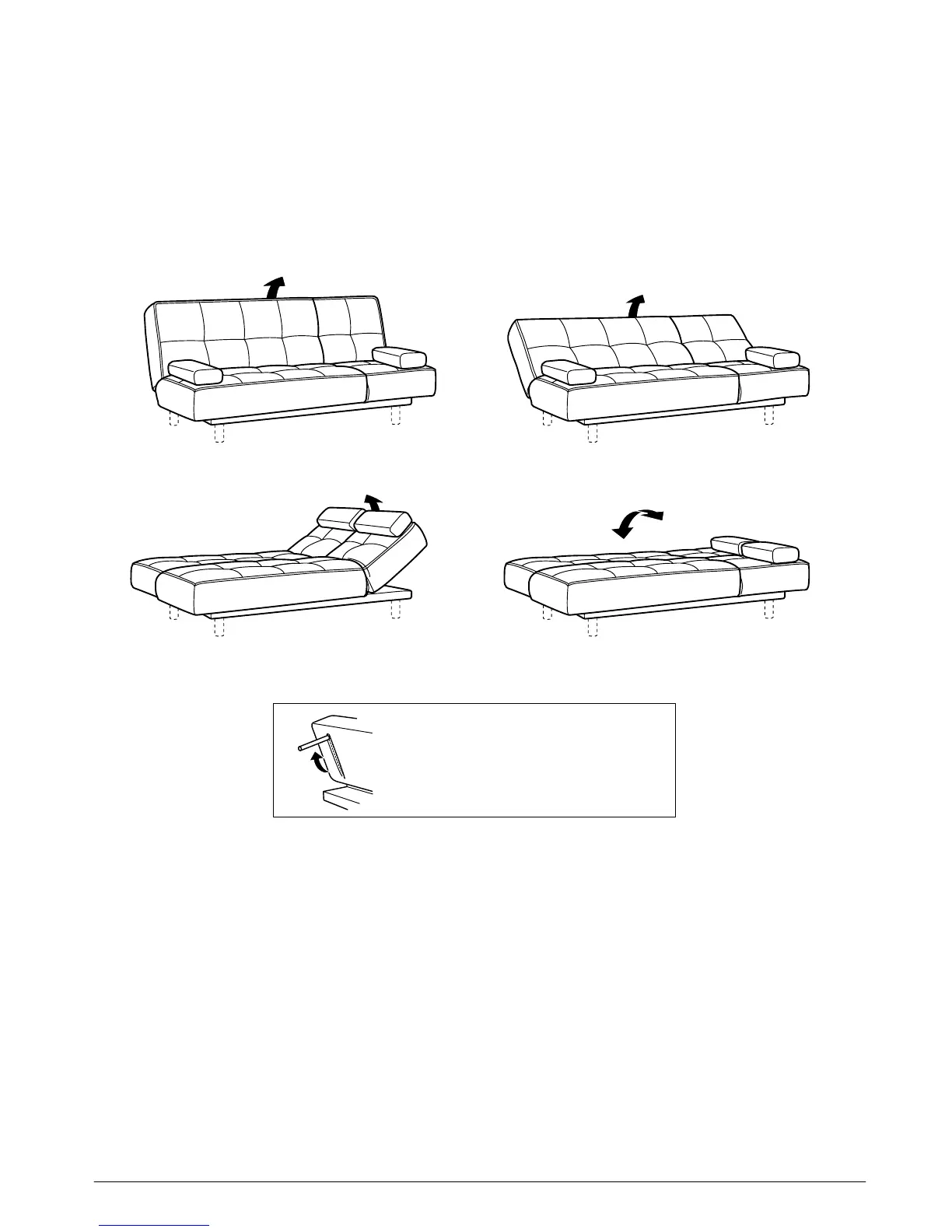 From sofa or lounge position, lift backrest all the way upwards until the last click is heard which unlocks the mechanism and carefully return to a