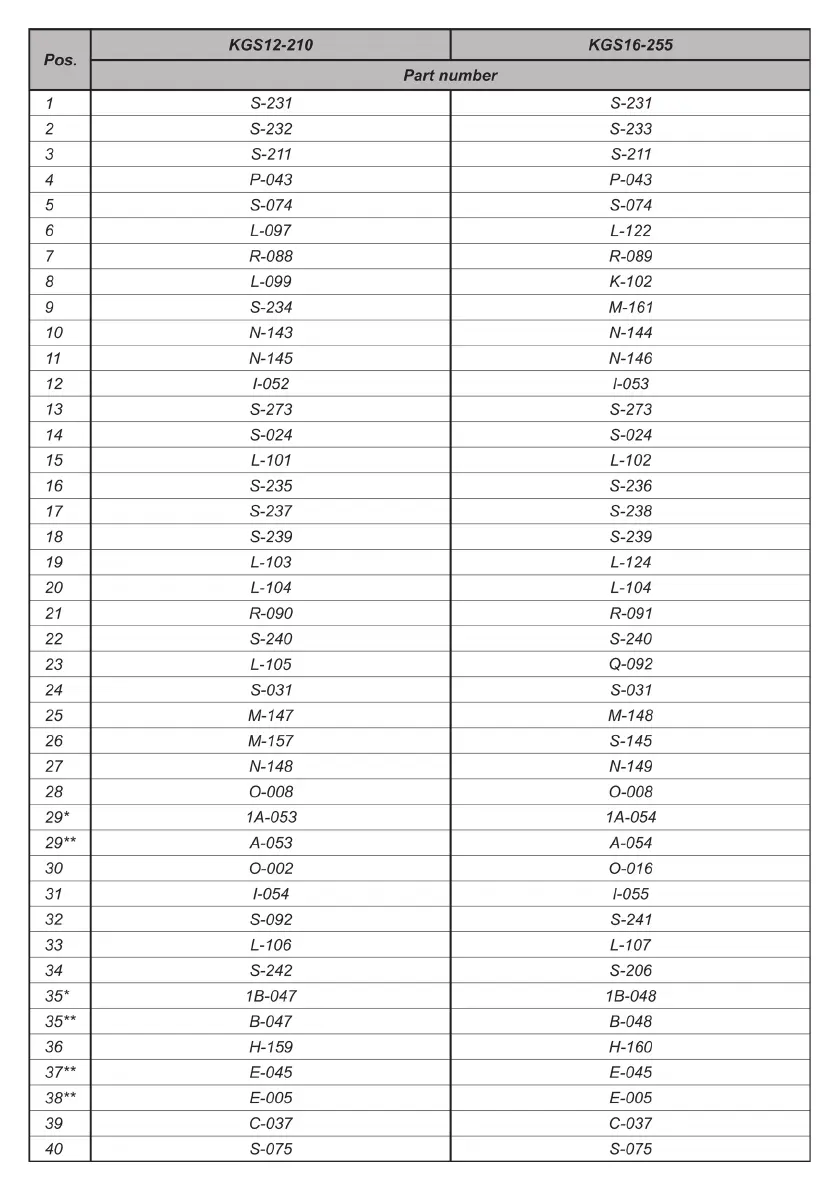 DWT KGS12-210 - Part Number Reference