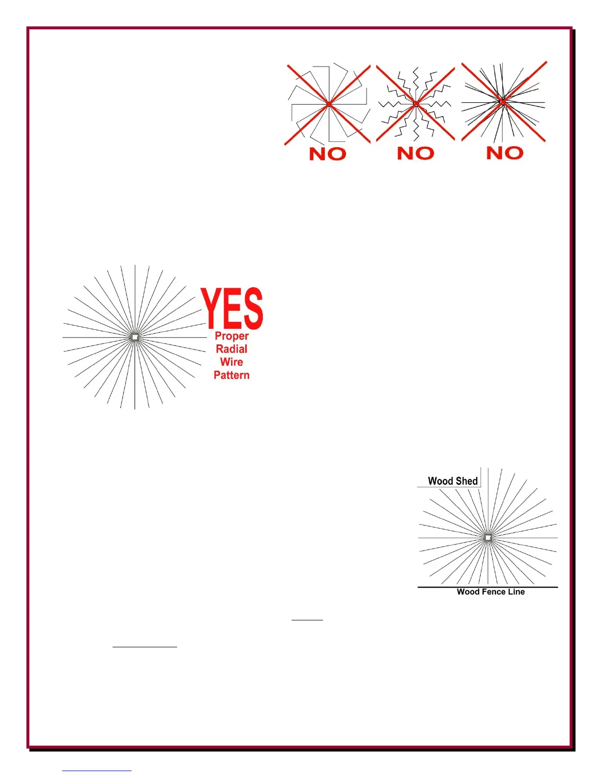 Radial wires should run in all directions straight from the base