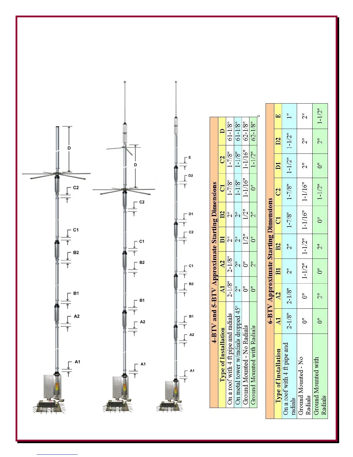 order to make the trap sleeve adjustment to tune the antenna. The lettered dimensions charted below