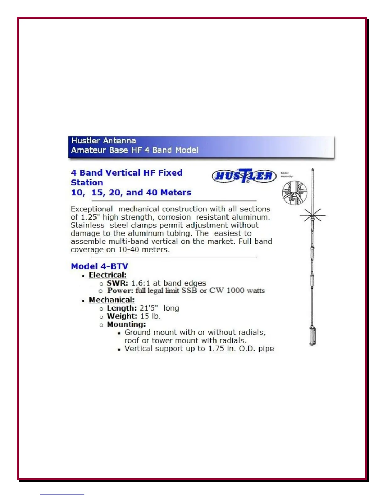 DX Engineering 6-BTV - Hustler BTV Specifications