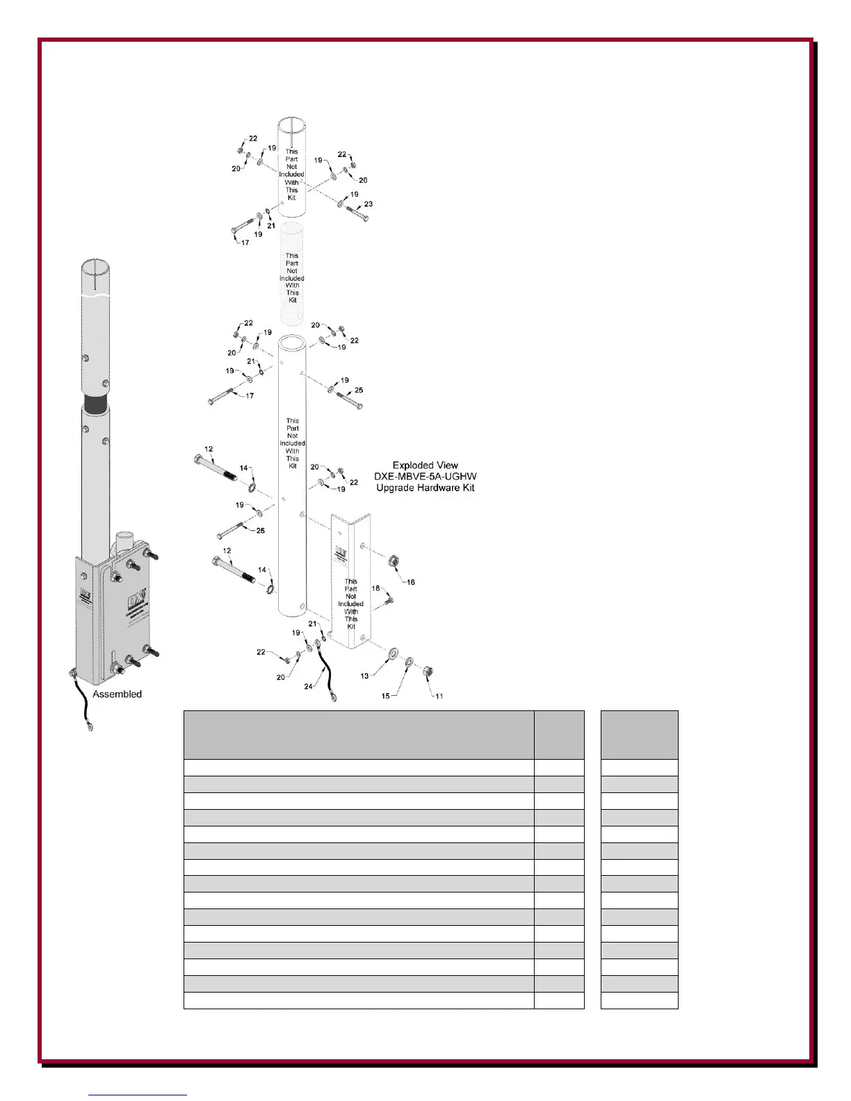 Figure B-2 - Upgrade Hardware for the Extended Base Tube Drawing