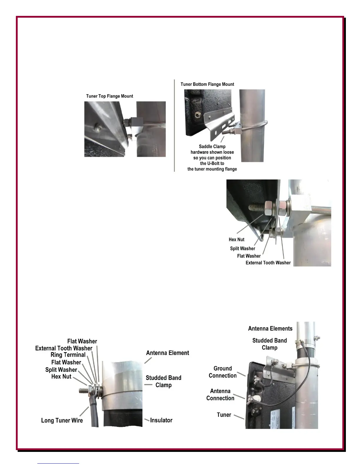 Washers and two 5/16”-18 Hex Nuts to hold the tuner in place on the upper clamp as shown. You