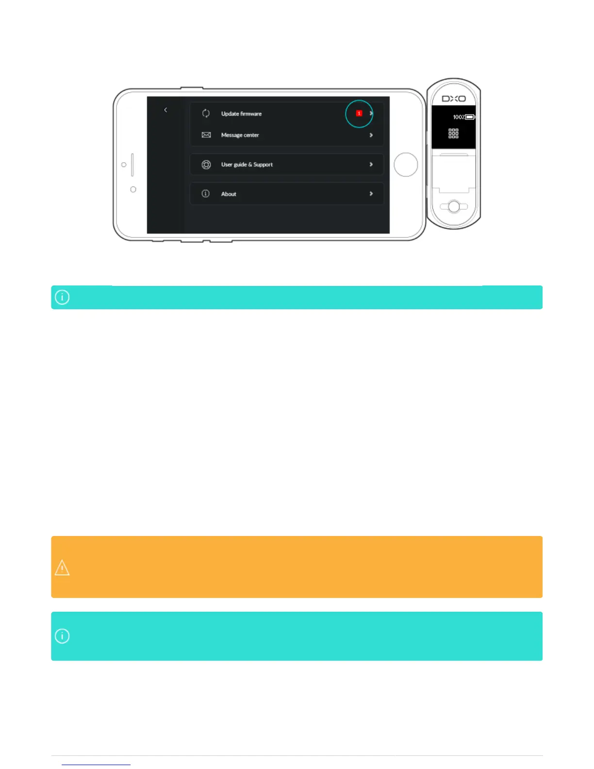 4. A progress bar will appear during the download. You cannot use your DxO ONE during the firmware update.
