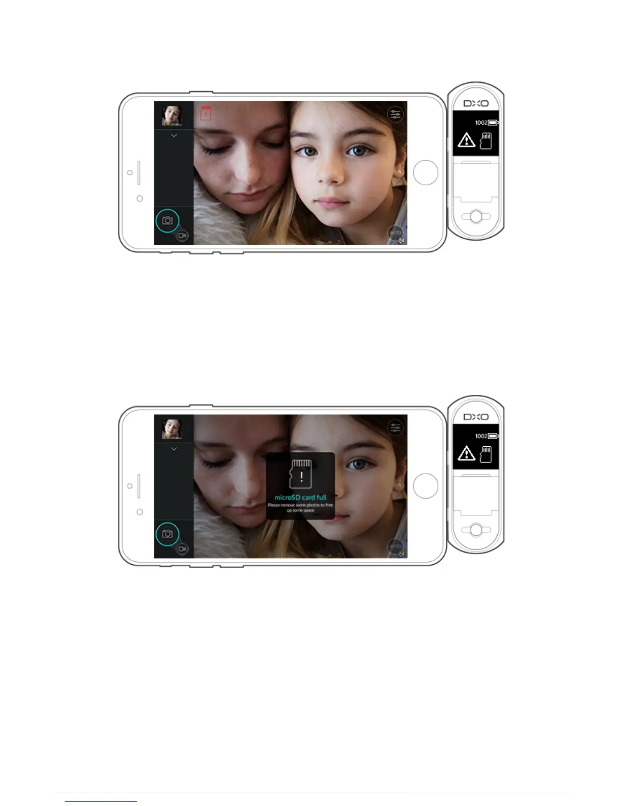 When your microSD card is full, the following warning will be displayed on the OLED and iPhone screens: