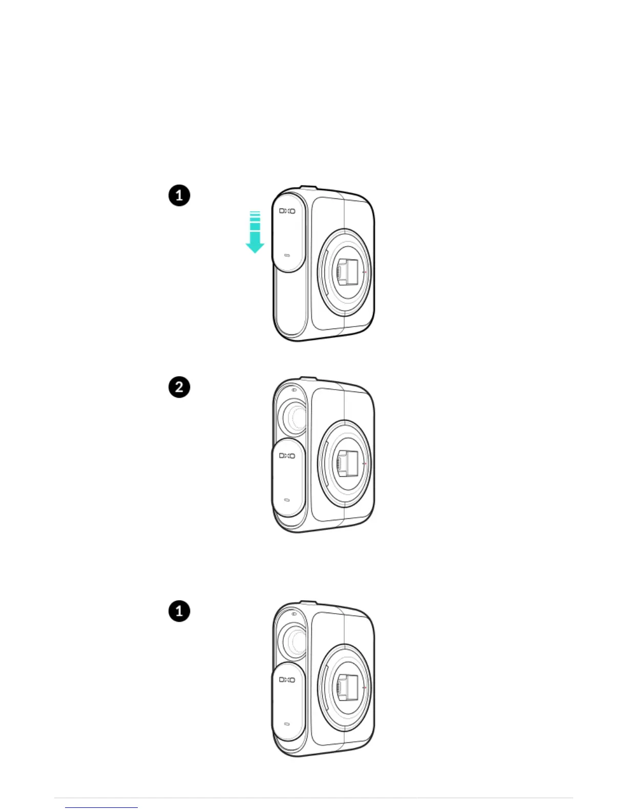 1. Slide the lens cover down to power on the DxO ONE.