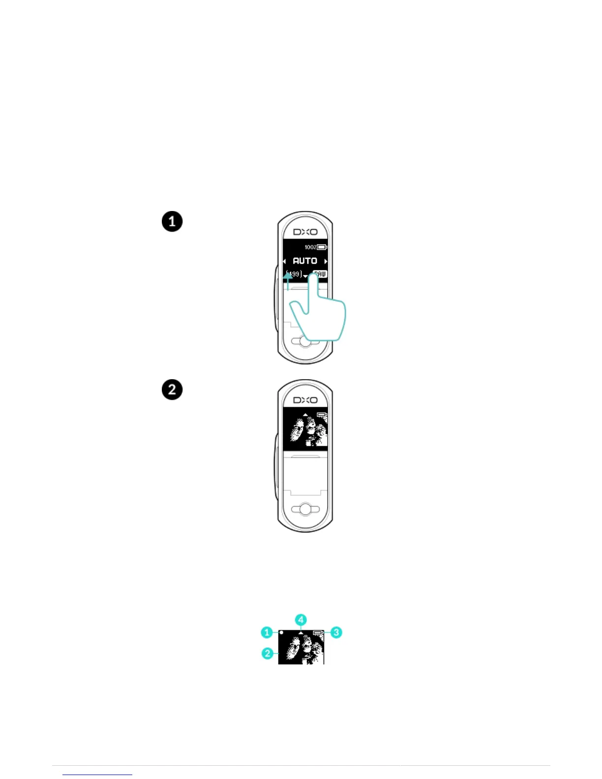 whether shooting photos or video. It uses the DxO ONE’s OLED screen, which displays a monochrome image of