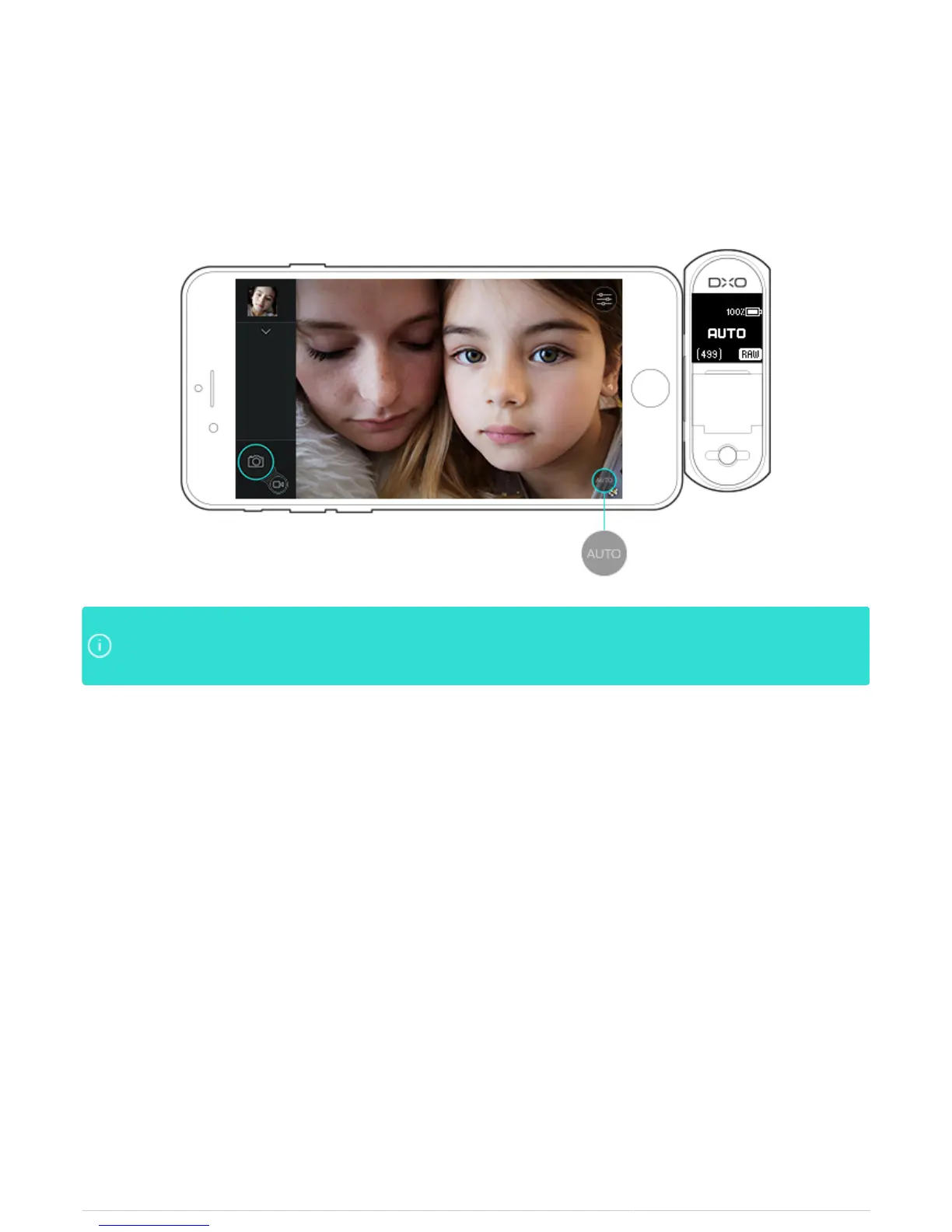 In AUTO mode, the DxO ONE will choose the optimum aperture, shutter speed and ISO for theIn AUTO mode, the DxO ONE will choose the optimum aperture, shutter speed and ISO for the