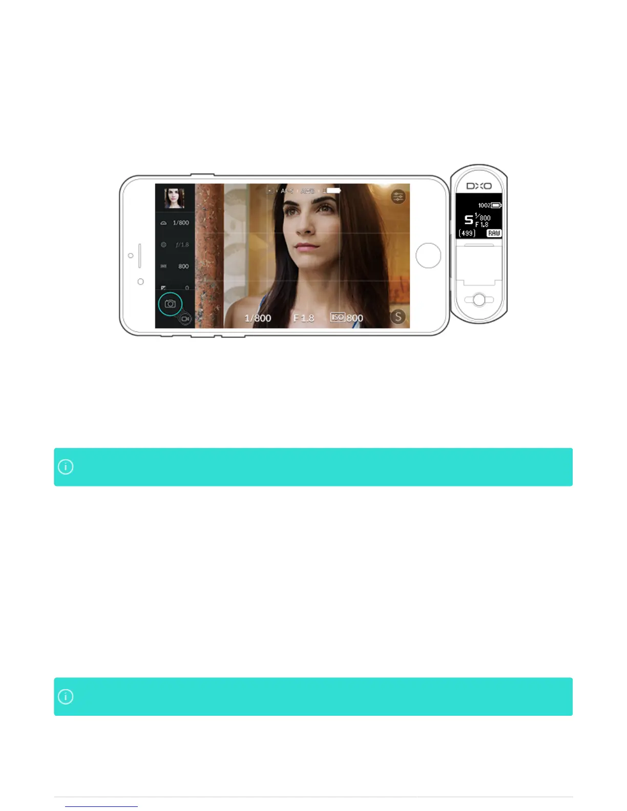 The DxO ONE iOS application has a built-in composition grid and a display of the principal shooting parameters.