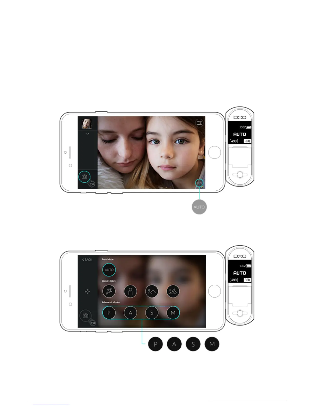 1. To access the advanced modes, tap the capture mode selector displayed on the iPhone screen at the bottom