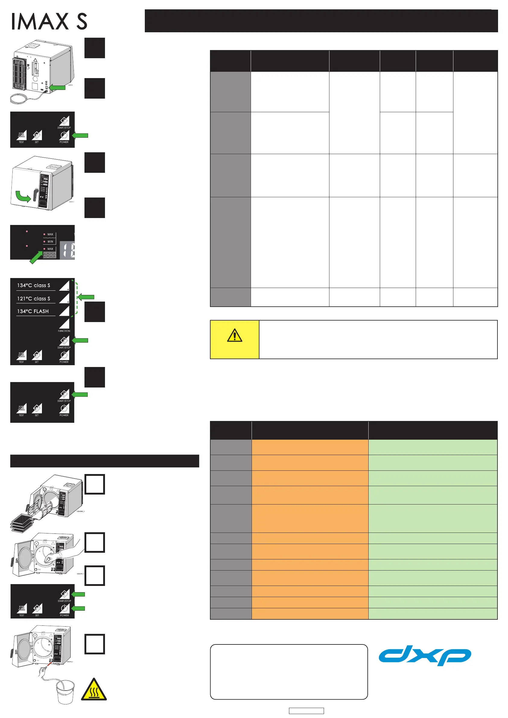 QUICK GUIDE FOR USING THE STEAM STERILISER