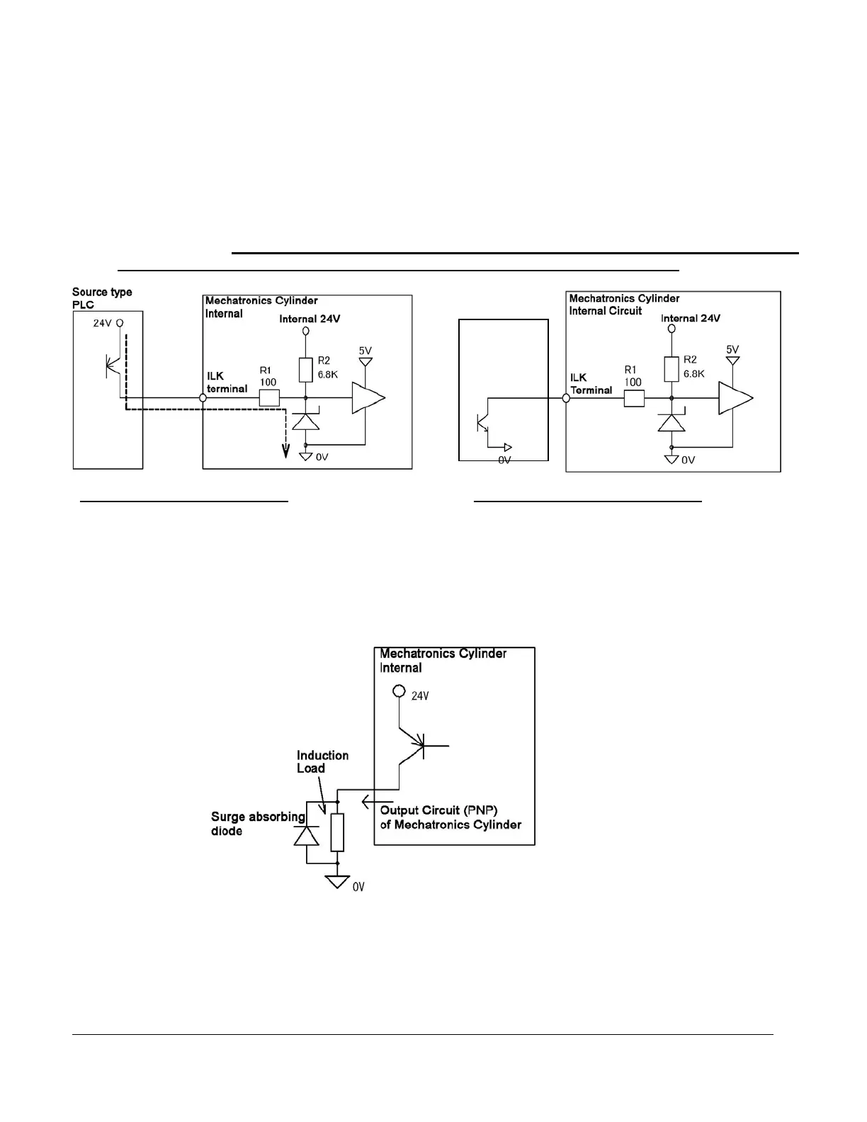 The output circuits of the Mechatronics Cylinder are open collector outputs as shown below. Therefore