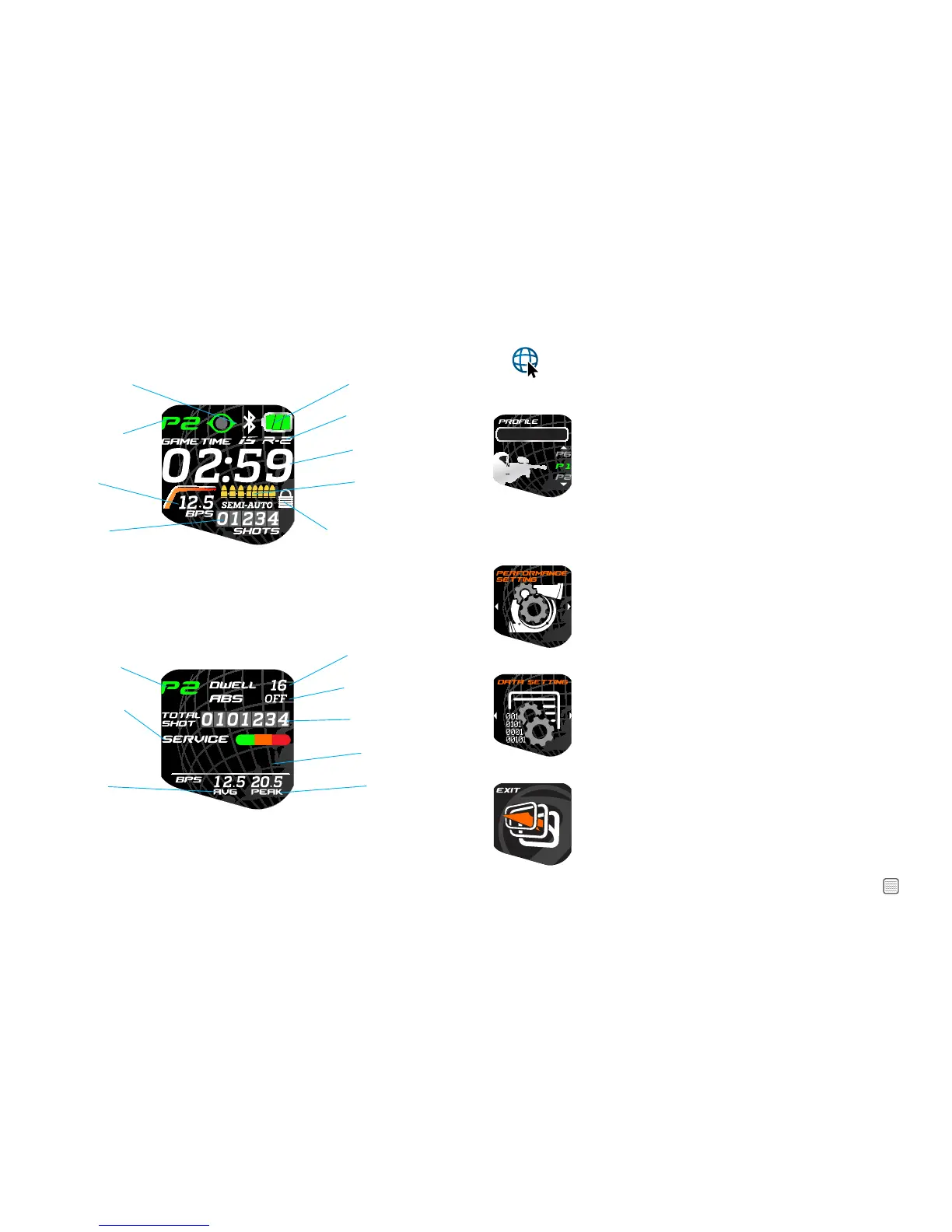 Joystick LEFT. The Systems Check screen gives you a quick overview of your gun’s primary