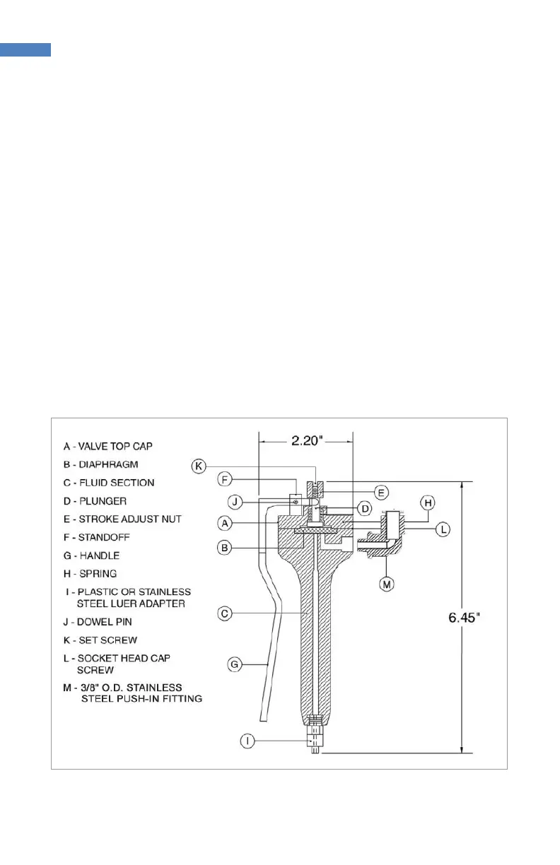 constructed of Delrin® and contains a Teflon® Diaphragm. The Fluid Section and the
